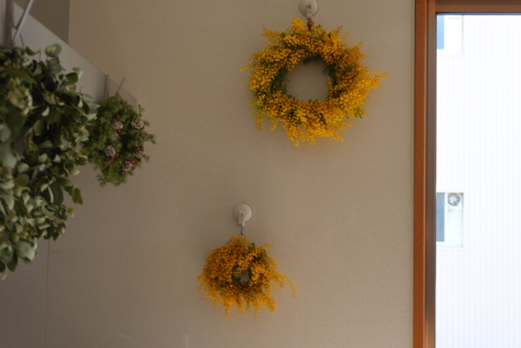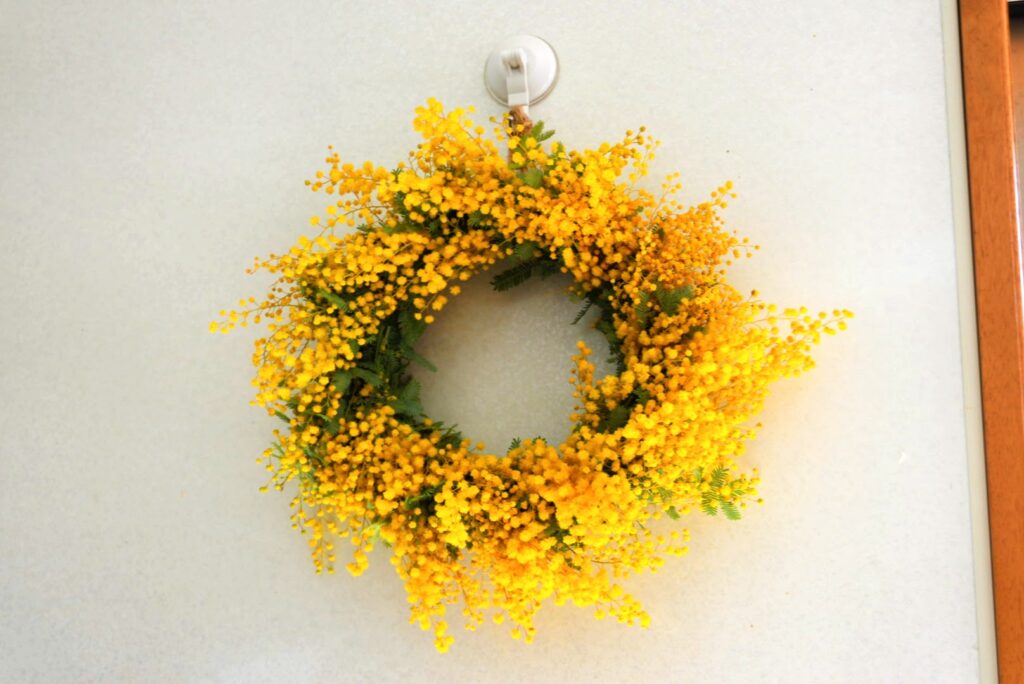 お友達のノコさんは、季節ごとにリースを作られており、春のミモザは元気が出る鮮やかな黄色で好きなお花だそうです。