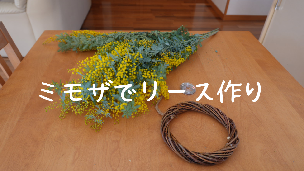 切り花を飾る習慣もなかったし、買って帰ろうなんて思った事もなかったのですが、季節を楽しむお友達から「一緒にリースを作ろう」と誘ってもらって、初めてミモザを購入しました。